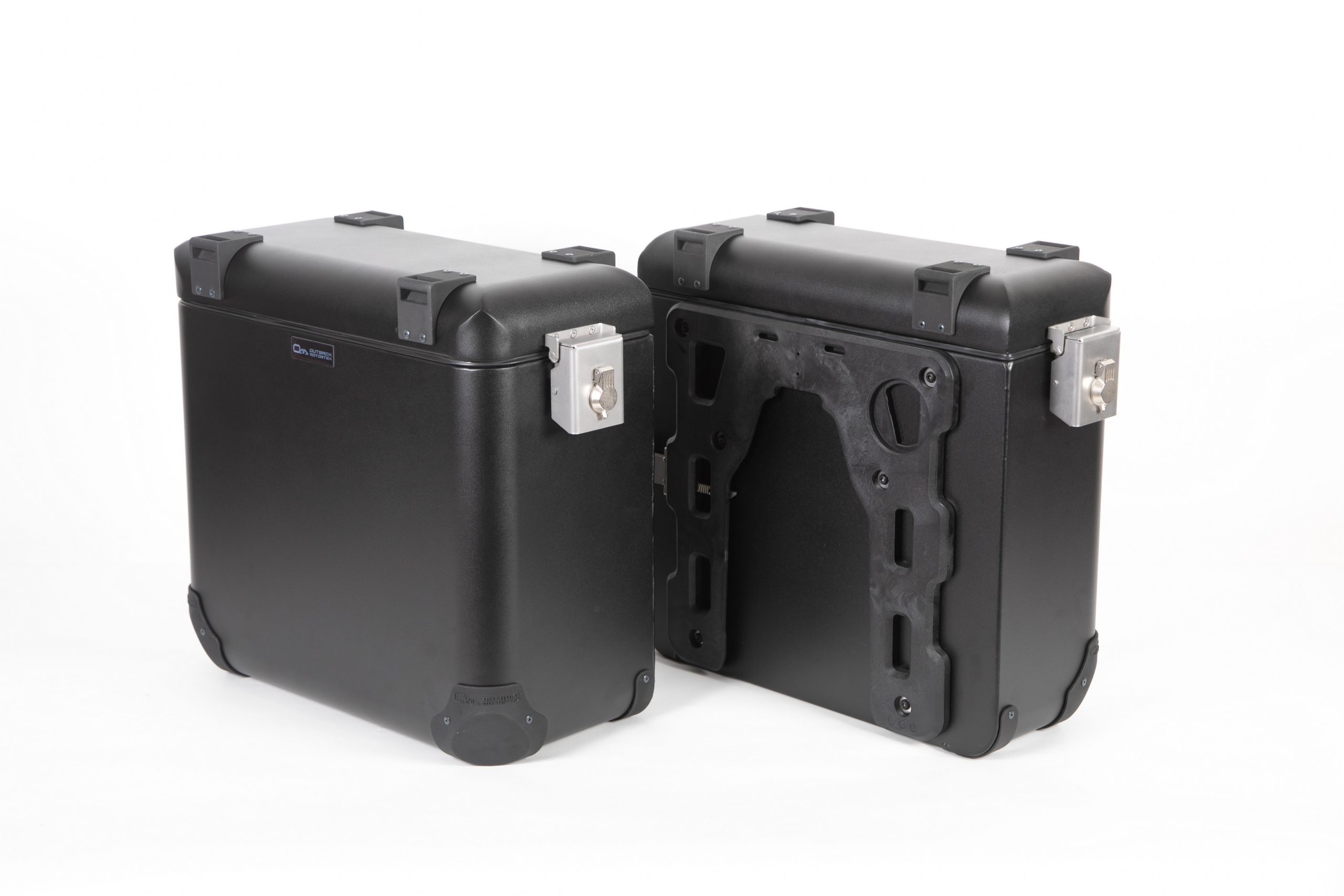 Black. Light. Aluminium. The Outback Motortek aluminium panniers are a tough, safe and lockable hard case set, ready to become part of the ultimate motorcycle travel luggage system. Whether you ride on the more or on the less travelled road, both your bags and your valuables are perfectly safe and secure at all times. Our cases feature Mosko Moto’s proven wedge-mount system for easy mounting and dismounting, and include some (optional) accessories for a complete and versatile luggage system. Keep reading below for further details.