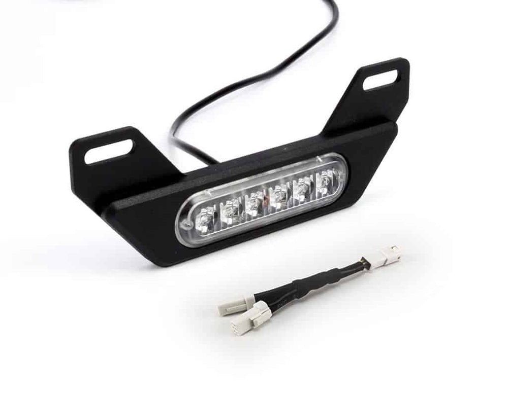 This KTM Auxiliary LED Brake Light Kit was designed to mount a single B6 brake light to your license plate. Purpose built to create the most amount of light from the smallest most low-profile housing possible the B6 is unbelievably bright but will practically disappear once installed.The included plug-&-play wiring adapter plugs directly in-line into the factory KTM brake light circuit. No wire tapping or other modifications to the original harness are necessary. Features: Dual Circuit: Running and brake 180 degree viewing angle 6 high power LEDs (single) Low 6 watt power consumption (single) Low profile design Plug-&-play wiring with KTM brake light circuit Specs: Power Draw: 0.5 Amp (single) Voltage: 12V DC Size: 4.4″ x 1.1″ x 0.42″ (single) Raw Lumens: 870 (single) IP67 Waterproof What’s in the box: DENALI B6 license plate LED brake light M6 Mounting hardware (1) Wiring pigtail (3) Posi-Taps (1) Wiring adapter for KTM motorcycles Kit Components: 1 DENALI B6 Auxiliary LED License Plate Brake Light Kit – DNL.B6.10000 1 Wiring Adapter – B6 Brake Light to KTM OEM Harness – DNL.WHS.12600 Fitment Notes 2017-2019 KTM 1090 Adventure R 2013-2016 KTM 1190 Adventure 2013-2016 KTM 1190 Adventure R 2015-2017 KTM 1290 Super Adventure 2017-2019 KTM 1290 Super Adventure R 2018-2019 KTM 1290 Super Adventure S
