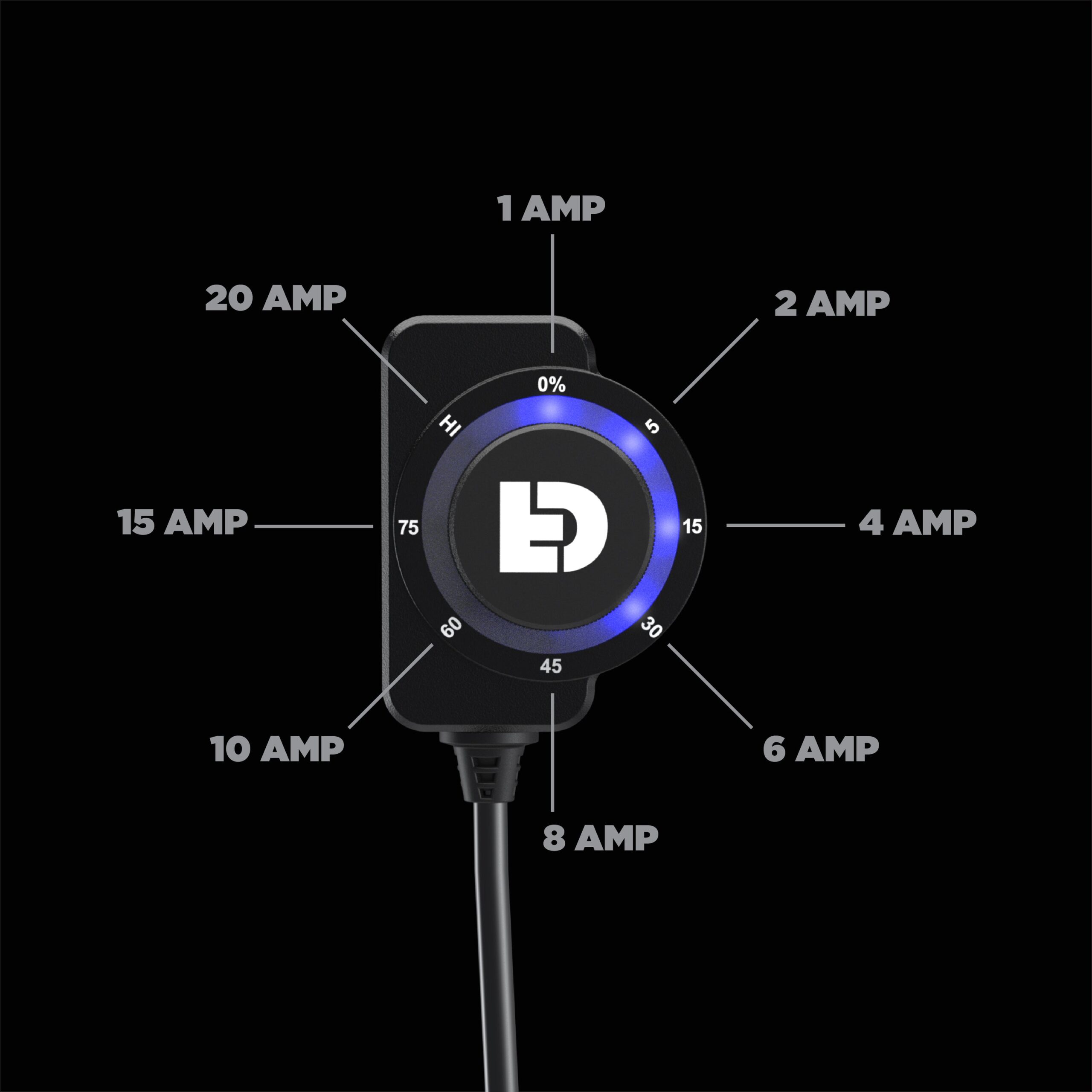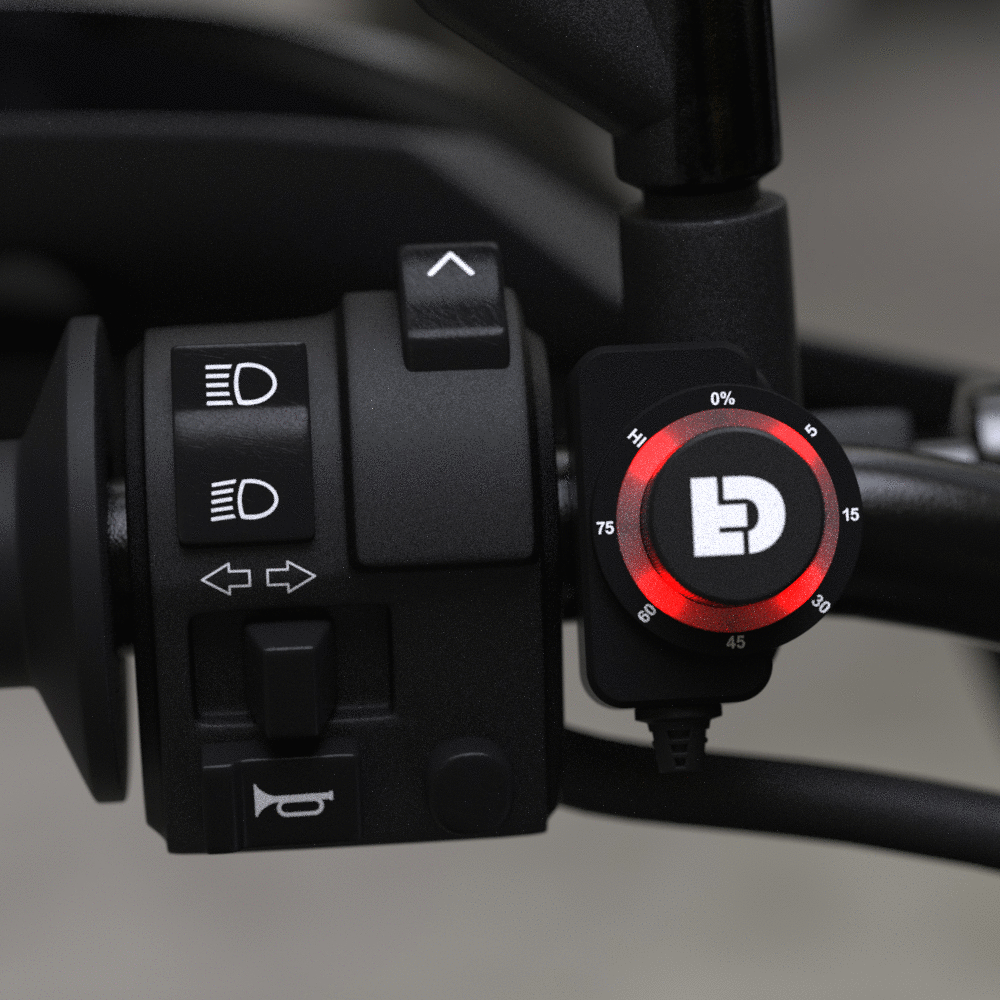 One Switch, Two Circuits, Infinite Control Our ground-breaking DialDimâ„¢ Lighting Controller features a multicolor halo dimming switch that allows you to independently turn on/off and dim two sets of auxiliary lights from a single consolidated wiring harness. The LED halo switch displays your exact settings and allows for effortless dimming on the fly. The blue halo controls light set one and the green halo controls light set two; simply double click to switch between the two circuits.The controller also features high beam, turn signal, and horn inputs to unlock intelligent flash features that can cancel your aux lights with your turn signal, flash your aux lights as a turn signal, or strobe your lights when you sound your horn. More Features, More Feedback Our patent-pending multicolor halo dimmer switch can do a whole lot more than just turn your lights on and off and dim them. For starters, it displays the exact intensity of both of your lights so you’re never stuck guessing if your lights are on, or what intensity they’re set to.Thanks to the electronically fused circuits, the halo switch can also display, and allow you to select, the fuse values for each circuit. And if a fuse trips, the LED halo will turn red providing realtime feedback and allow for resetting the fuse.Last but not least, the switch halo doubles as a battery monitor with a low-voltage cutoff feature. Our industry-first design will flash different colors on startup to display your battery health and automatically shut off your auxiliary lights if the battery voltage drops below 10.8 volts. DialDimâ„¢ Harness Overview The dedicated light outputs are labeled and color coded so adding one or two sets of lights to you vehicle couldn’t be any easier. Connect your main lights to the blue leads and your 2nd set of lights (typically fog or visibility lights) to the green leads.Then simply connect the ring terminals to the vehicle battery and the white 12v input wire to a switched power source. To enable the high beam sync, turn signal flashing features, or horn flashing features simply connect the input wires to the corresponding circuit on the vehicle.In addition the controller harness and switch, the kit includes (4x) five foot plug-&-play light extensions and a handlebar switch mount. Simply add the light pods and your ready to ride! Modular Mounting, Universal Design We engineered our DialDim Lighting Controller with all of your outdoor adventures in mind. Our patent-pending dimmer switch is designed to be handlebar mounted or surface mounted in both the horizontal or vertical position.The space-saving design is ideal for ATVs, Side by Sides, Jeeps, and Trucks (in addition to motorcycles) by enabling independent control of two sets of lights from a single switch. DENALI® DialDimâ„¢ Lighting Controller – Our Unique Features On/Off & Dim Independently control two sets of lights on/off and intensity level using the single DialDimâ„¢ Switch. The blue halo controls light set one and the green halo controls light set two. Double click to switch between the two circuits. High/Low Sync Your auxiliary lights will automatically switch between your selected dim setting to full intensity with the factory high beam switch. Simply connect the blue input wire to your vehicle high beam circuit to enable this feature. Stealth Mode A clever 0% dim setting on the switch allows your lights to be “off” during normal driving conditions but will jump to 100% intensity with your vehicle high beam switch. The lights will also react to turn signal and horn inputs in this mode but will remain off when no inputs are detected. Cancel with Turn Signal When enabled the main lights (blue circuit 1) will cancel in sync with your signal to prevent “washing out” your factory turn signal. Simply connect the yellow and orange input wires to your vehicle turn signal circuit to enable this feature. Flash as Turn Signal When enabled your amber visibility lights (green circuit 2) will flash in sync with your factory turn signals. Simply connect the yellow and orange input wires to your vehicle turn signal circuit to enable this feature. Strobe with Horn When enabled your auxiliary lights on both circuits will strobe at 4Hz when you sound your horn. Simply connect the green input wire to your vehicle horn circuit to enable this feature. Electronically Fused Circuits Both light circuits are electronically fused and can be set right from the switch itself! The halo will illuminate red to notify you when a circuit fused is tripped. Voltage Display Indicator Upon vehicle startup, the switch halo will flash green to indicate a healthy battery voltage, or flash red to indicate a battery voltage that is below 11.8v. Low Voltage Cutoff If battery voltage drops below 10.8v the lights will not power on preventing you from being stranded. The switch halo will flash 4 red LEDs to indicate the low voltage condition. Intuitive Lighting Control Easy to operate and easy to read multifunction switch Operating the Multifunction Switch The switch functions are easy to remember, but we went ahead and printed it on the back of the controller housing anyway (just in case you forget)!Light Set One:Single click ON –> Press & Hold OFFLight Set Two:Double Click ON –> Press & Hold OFFSwitch Between Circuits: Double ClickFuse Setting Mode:7 second hold ENTER –> 2 Second Hold EXIT Reading the Halo Display Start Up Flash Sequence Green Flash on Start Up: Battery voltage above 11.8v Red Flash on Start Up: Battery voltage below 11.8v Red Flash (4 LEDs) on Start Up: Battery voltage below 10.8v. Low voltage cutoff mode. The lights will not turn on if voltage is below 10.8v. Lighting Control Steady Blue: Light set one operation & status Steady Green: Light set two operation and statusFuse Status & Setting Solid Red: Tripped fuse (on the circuit that turned red). Press and hold for 7 seconds to enter fuse setting mode. Blue Flashing: Fuse setting mode (circ