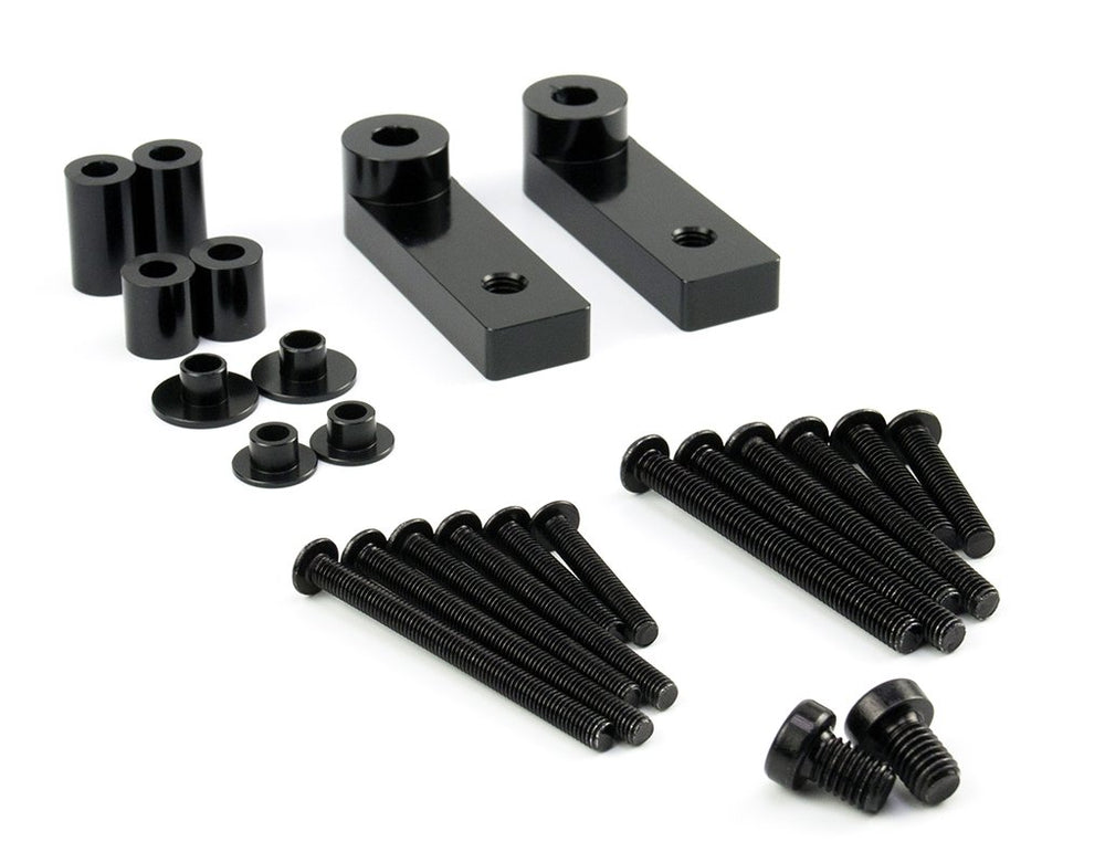 Product Description Constructed from black anodized billet aluminum for strength and durability, the DENALI LED Lighting Universal Offset Mount Kit provides 3 axis adjustability with a 1.75″ (45mm) offset that mounts to any M5, M6 or M8 bolt point on your motorcycle.Typical mounting points include fairings, triple clamps and fenders, and can be mounted horizontally or vertically. The bracket includes M6 and M5 mounting bolts but will also accept an M8 bolt. This makes the DENALI LED Lighting Offset Mount kit the most universal offset mounting solution we know of! Features Increases possible fitment options for enhanced lighting opportunities Permits lights to be mounted in any M5, M6, & M8 bolt locations capable of supporting auxiliary lights Compatible with all DENALI auxiliary light kits or pods & most other auxiliary lighting systems Possible mounting options include supported fairing bolts, fender bolts, triple clamps/fork & handle bars Great for motorcycles without model specific light mounts or with limited mounting options Pivoting mounts can be rotated on mounting bolt for optimum light placement High strength CNC machined aluminum mounting blocks Attractive & durable hard anodized black finish on mounts Back zinc & black anodized hardware enhances corrosion resistance Designed & engineered in the USA Simple & easy to mount What’s In the Box? (x2) CNC Machined Aluminum Brackets, Black Anodized (x2) M8x12mm, Black Zinc (x2) M5x30mm, Black Zinc (x2) M5x50mm, Black Zinc (x2) M5x60mm, Black Zinc (x2) M6x30mm, Black Zinc (x2) M6x50mm, Black Zinc (x2) M6x60mm, Black Zinc (x2) Bushings for fitting M5 bolts, Black Anodized (x2) Bushings for fitting M6 bolts, Black Anodized (x2) 14.3mm Mounting Spacers, Black Anodized (x2) 22.2mm Mounting Spacers, Black Anodized Instruction Manual SKU: LAH.00.10000.B