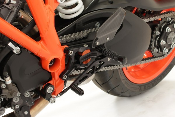 Gilles Tooling VCR Rearsets KTM 1290 Super Duke Models (see fitment list) The German company Gilles Tooling has been providing high-quality, innovative accessories for road-racing and street riding use since 2000. The company founder Gerhard Gilles, has combined his love of the sport, experience as a former racer and his technical knowledge of master CNC milling and design to create innovative solutions for performance parts. Gilles Tooling not only supplies to a worldwide market, but is also a trusted supplier of genuine accessories for Yamaha, Suzuki and BMW. Gilles Tooling is a development partner of Yamaha Racing Special Parts, showcased on all factory supported M1 Moto GP bies and R1M superbikes. Developed on the racetrack but also extensively tested on the road, Gilles Tooling products set standards in innovation, engineering know-how, performance and safety and comply to all European certifications. A completely new generation of rearsets Completely new way to adjust the foot peg position. Easy positioning of foot peg by precise adjustment slider. Adjustment screws are not visible (located below the slider) Facts: comfortable and easy to adjust position of the slider is easily visible by window in the base plate and laser engraved symbolssuper high grade aluminum al7075 perfect symbiosis of light weight and strength standard and reverse shifting possible dual aluminum heel protectors various adjustment possibilities: footrest, shift travel, foot length easy positioning of foot peg by precise adjuster 12 positions to choose for the foot peg no play, double ball-bearing gear and brake leverfixed racing foot pegs. FEATURES: 7075-T6 Aluminum / Carbon Black Anodized Adjustable rearset made of super high grade 7075 aluminum Perfect balance of weight and strength Standard shifting only Optimized ergonomics using innovative rolling toe piece on gear lever Single or dual carbon heel protectors Integrated brake light micro switch Unlimited adjustment possibilities of footrest, shift, and foot length Fix optimum position with a central clamping screw Double ball bearing gear and brake leer Rolling toe piece enables less effort when shifting gears Brake lever positioning possible with adjuster FITMENT: 2016-2018 KTM 1290 Super Duke GT 2014-2019 KTM 1290 Super Duke R 2014-2019 KTM 1290 Super Duke