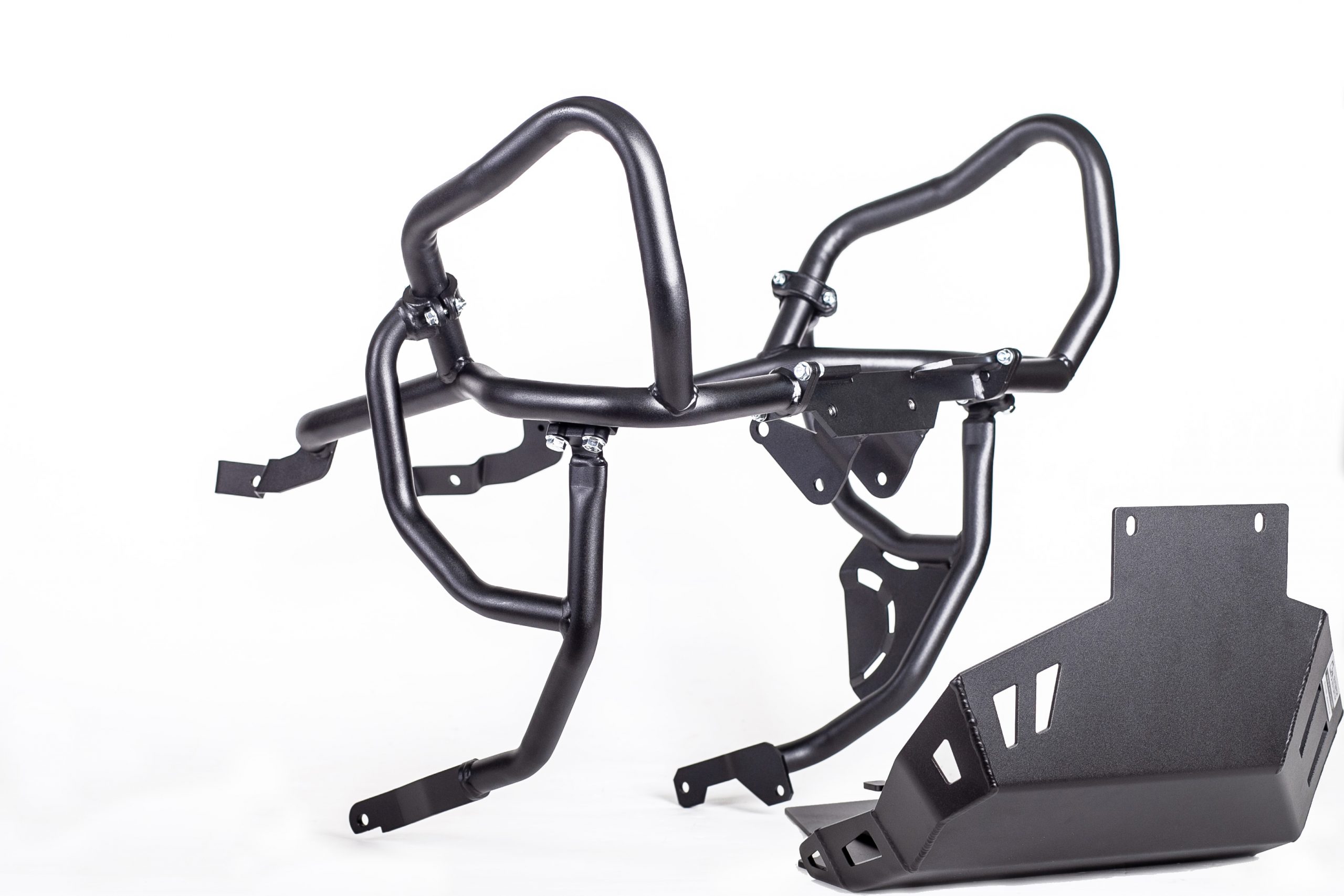 This protection combo consists of the Lower Crash Bars, Engine Case Guards, and our Skid Plate. If you are looking to tackle the trails, this combo is made for you. All of the products in this combo have been rigorously tested and proven themselves effective against drops and tip overs. Go watch our drop test video if you haven’t already! Total Weight: 11.5Kg Lower Crash Bars: 4Kg | Engine Case Guards: 3.5Kg | Skid Plate: 4Kg Important: Changing the air filter of your Africa Twin is a big job that requires the removal of the plastic fairings. With our lower crash bars mounted, you can still remove, or have the plastic fairings removed by your dealer’s mechanic. Note: The red crash bars and engine guards automatically come with a black skid plate.