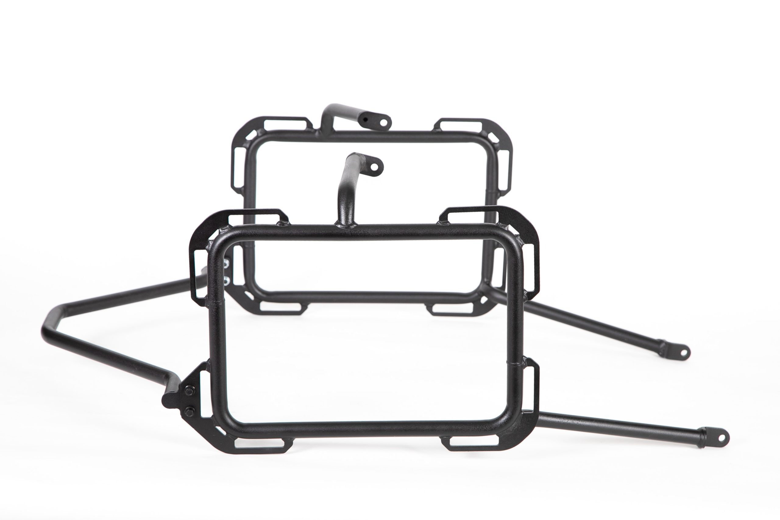 The X-Frames for the Honda CRF250L and CRF250Rally are the most universal and functional side pannier frames yet, allowing simple, secure mounting of Rotopax, hard panniers and soft luggage. We also offer standard pannier racks. The difference between our standard pannier racks and the X-Frames is that the standard frames don’t feature RotoPax mounts and tabs welded on all four corners.