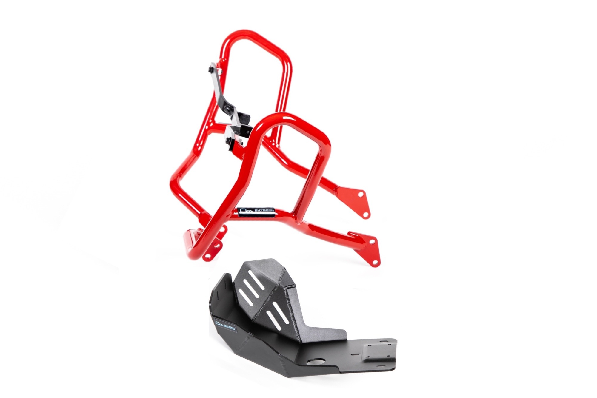 Bundled up for your convenience, this package includes both our Crash Bars and our Skid Plate for the CRF450L and RL models. It is the answer you have been looking for to achieve peace of mind on the trail! Make sure to keep scrolling to read more about the individual products in this bundle! Total Weight: 4.6Kg Crash Bars: 3.1Kg | Skid Plate: 1.5Kg