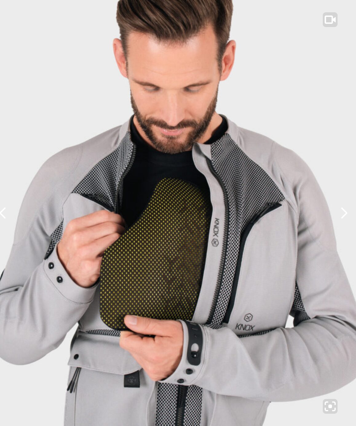 Knox chest protection is courtesy of a low-profile Micro-Lock chest protector to fit all Knox Armoured Shirts and Jackets. CE certified to EN 1621 – 3. All are available as aftermarket upgrades to existing body armour. Micro-Lock offers a snug, soft fit to the wearer but thanks to its SMART technology it locks in the case of an impact and absorbs a significant amount of energy before it gets to the wearer’s torso.