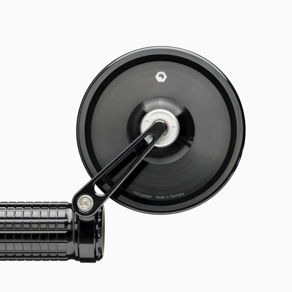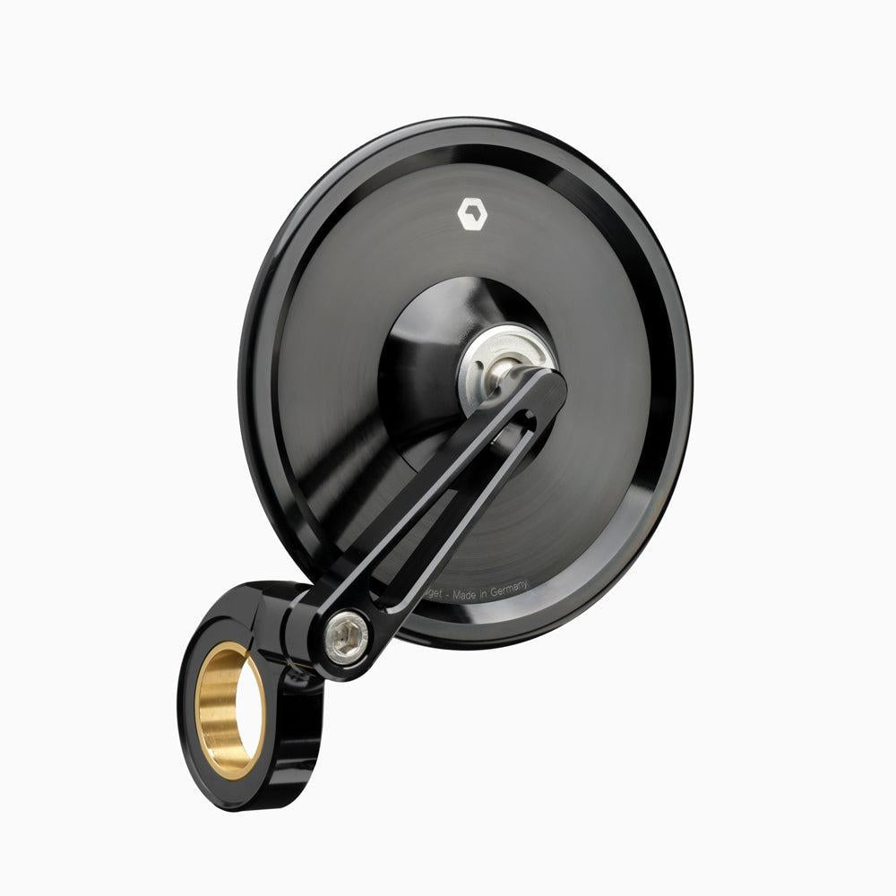 The handlebar end mirror in a classic round design with ECE marking can be mounted above or below the handlebars. The angle of the mirror arm can be individually selected.