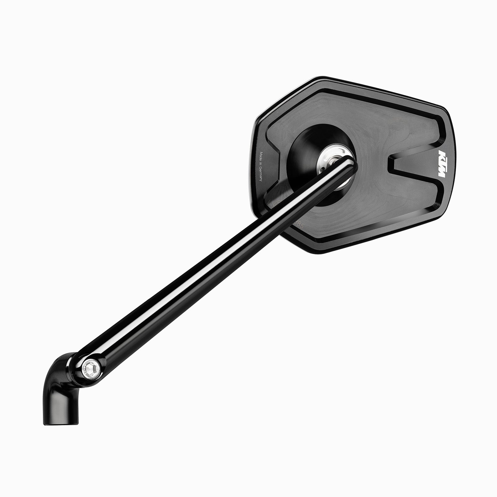 The ECE-marked add-on mirror was specially developed as a variant for KTM motorcycles and can be easily fitted to any M10 mirror thread on the handlebars of these models. This version has a fixed arm length of 180 mm, which is optimally matched to the requirements and design of KTM motorcycles. This ensures easy and precise mounting on the handlebars. Limited to 250 pairs.