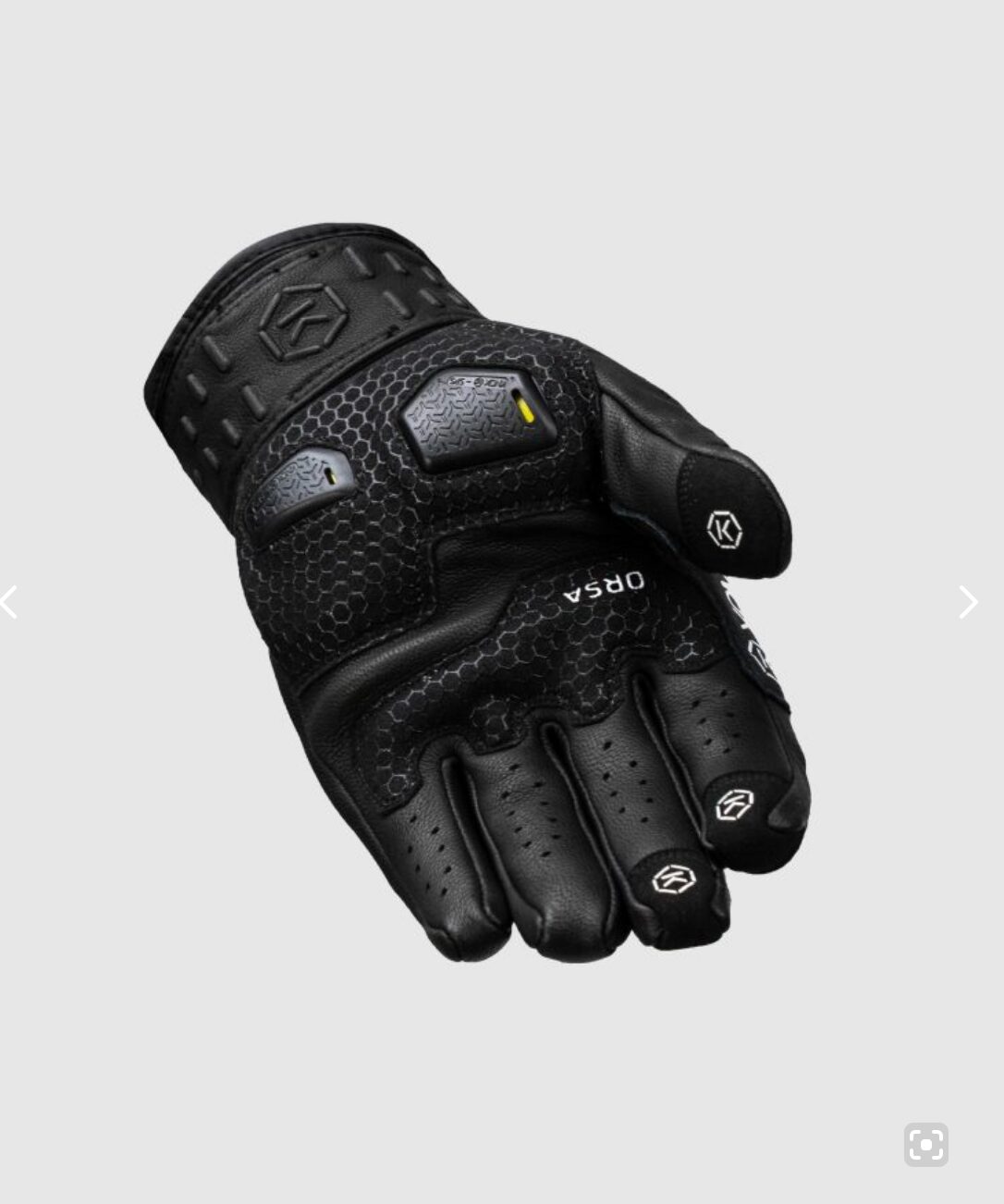 • Patented Knox Impact Scaphoid Protection System (SPS) on the palm with added Micro-Lock (Patent No EP1594378) to eliminate the grab effect that occurs when a leather palm makes contact with the road, reducing the risk of hyper extension which can be the cause of a broken scaphoid